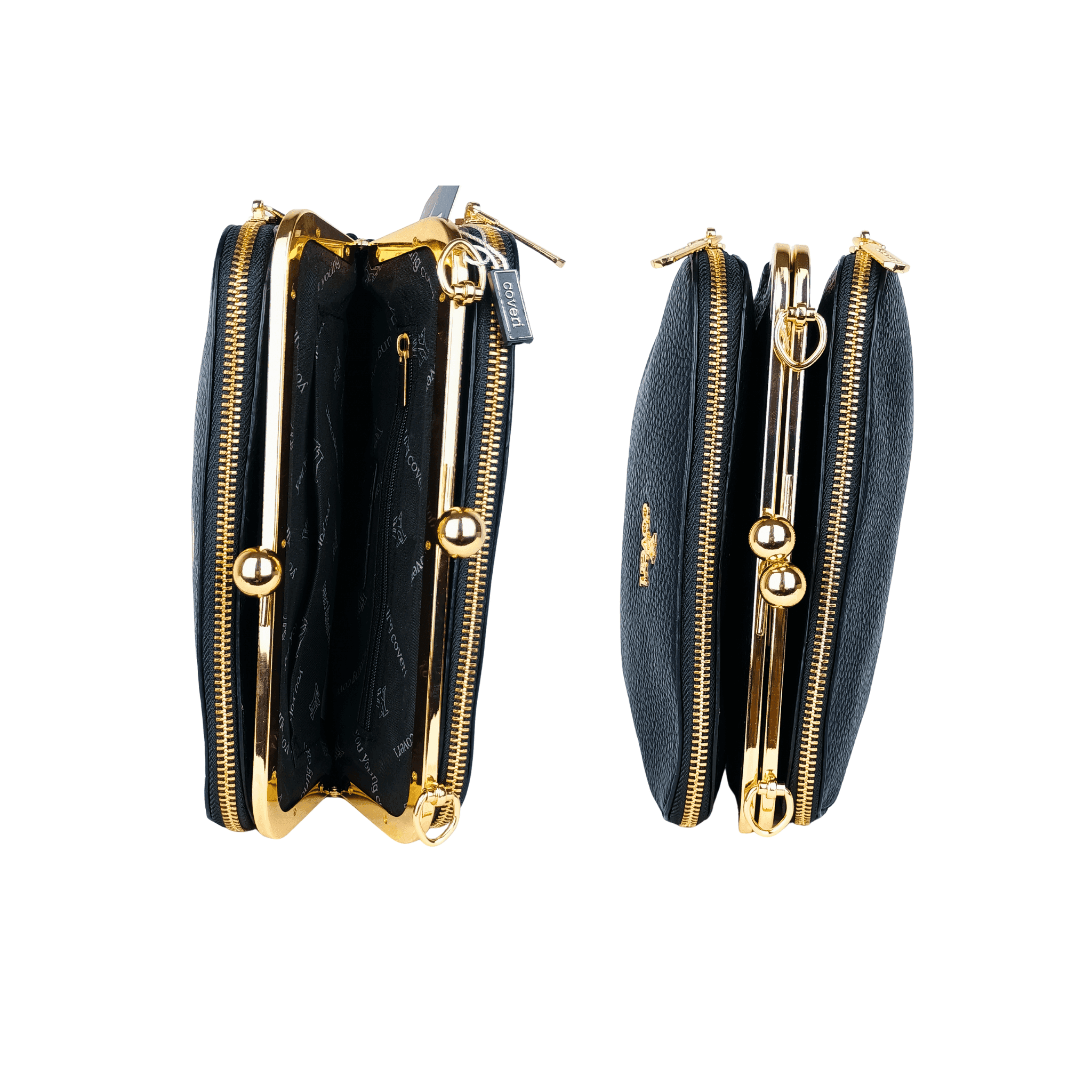 Enhance your wardrobe with the classic design of The Circle Black Leather bag. Elevate your fashion game effortlessly.