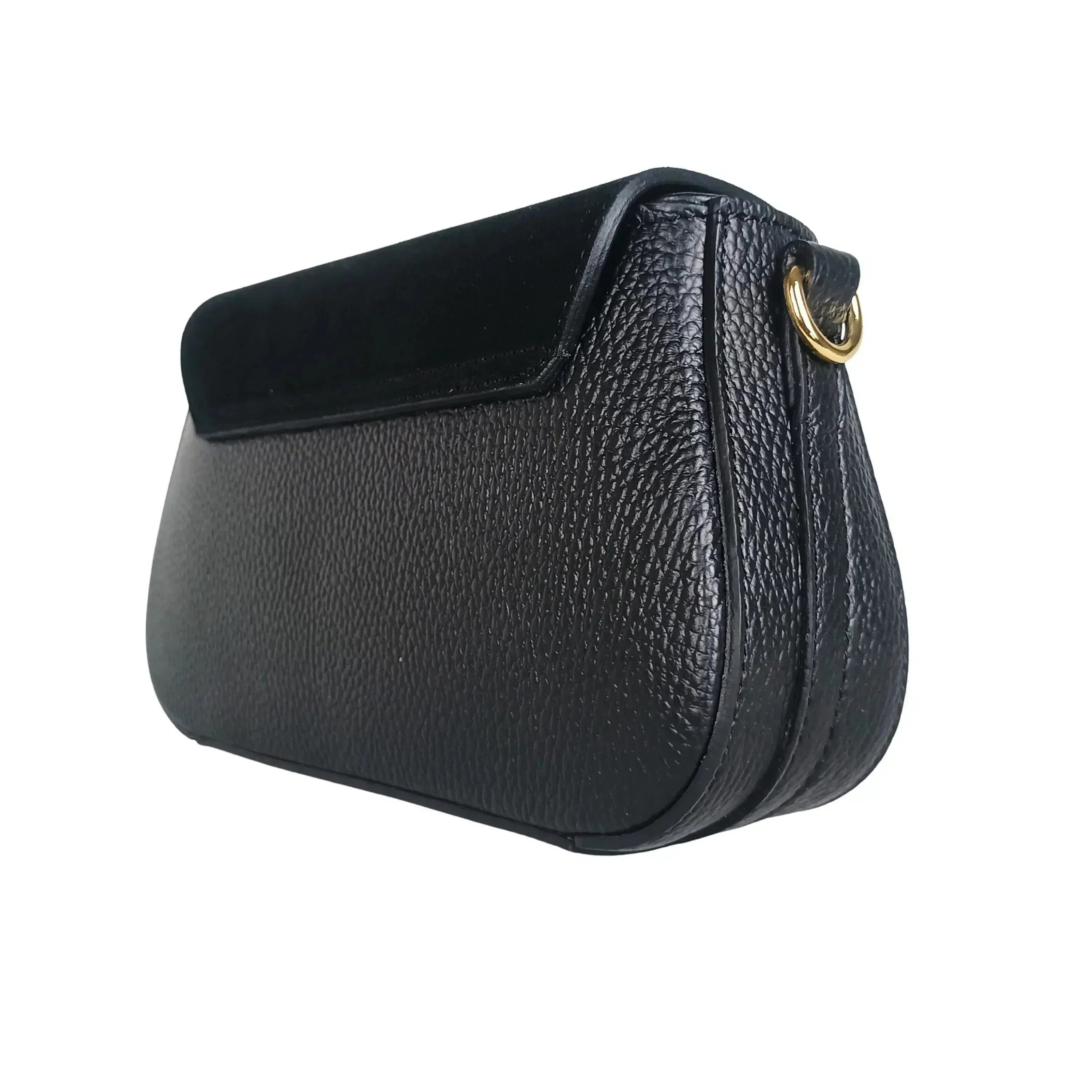 The Bella Nova Crossbody Bag is designed for everyday use with a clean, modern look. It is made from a combination of suede and leather for a soft texture and a durable finish. The interior provides organized space for daily essentials, and the adjustable strap allows comfortable carrying.