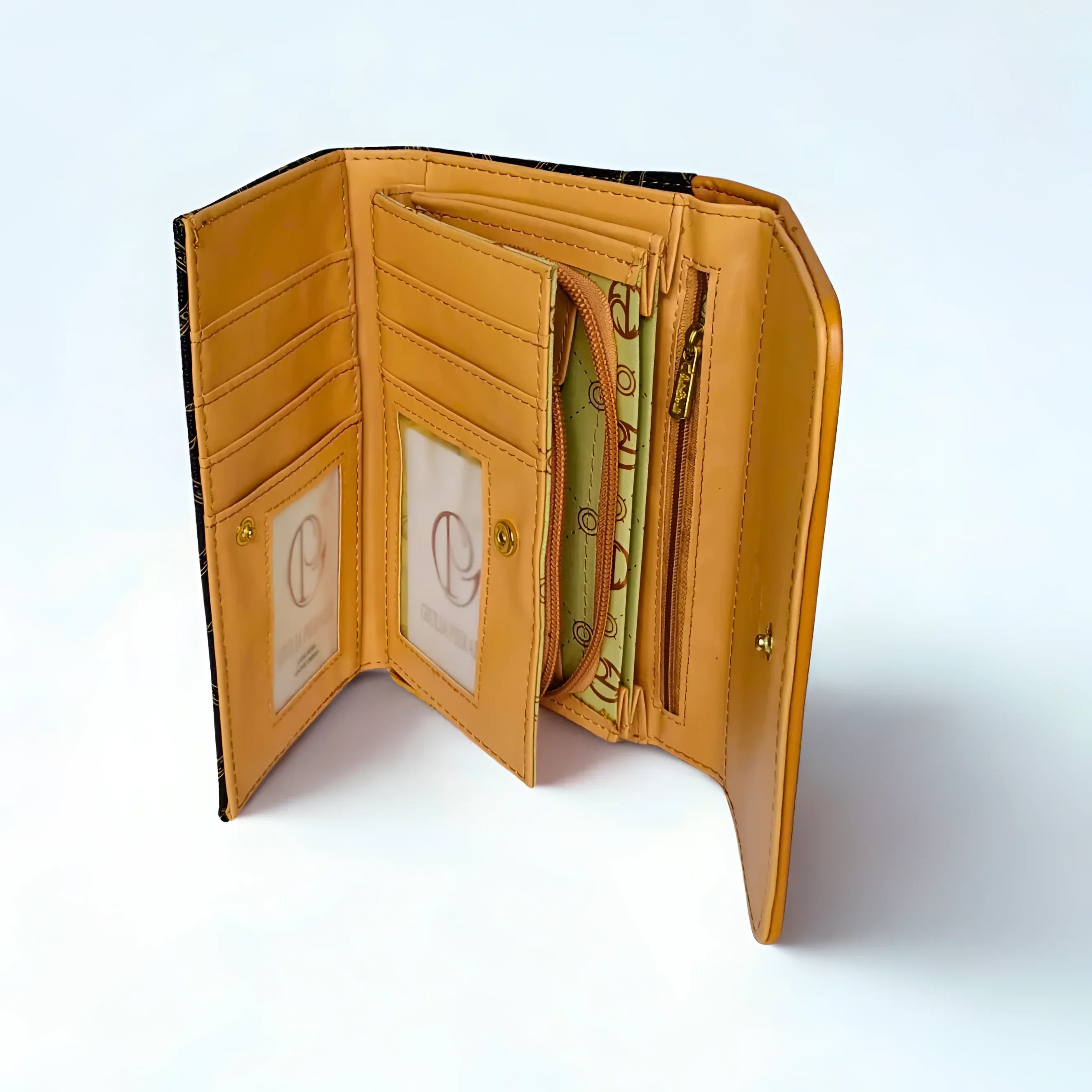 Brown Ladies Wallet with Tan Trim Pattern – MS-9991