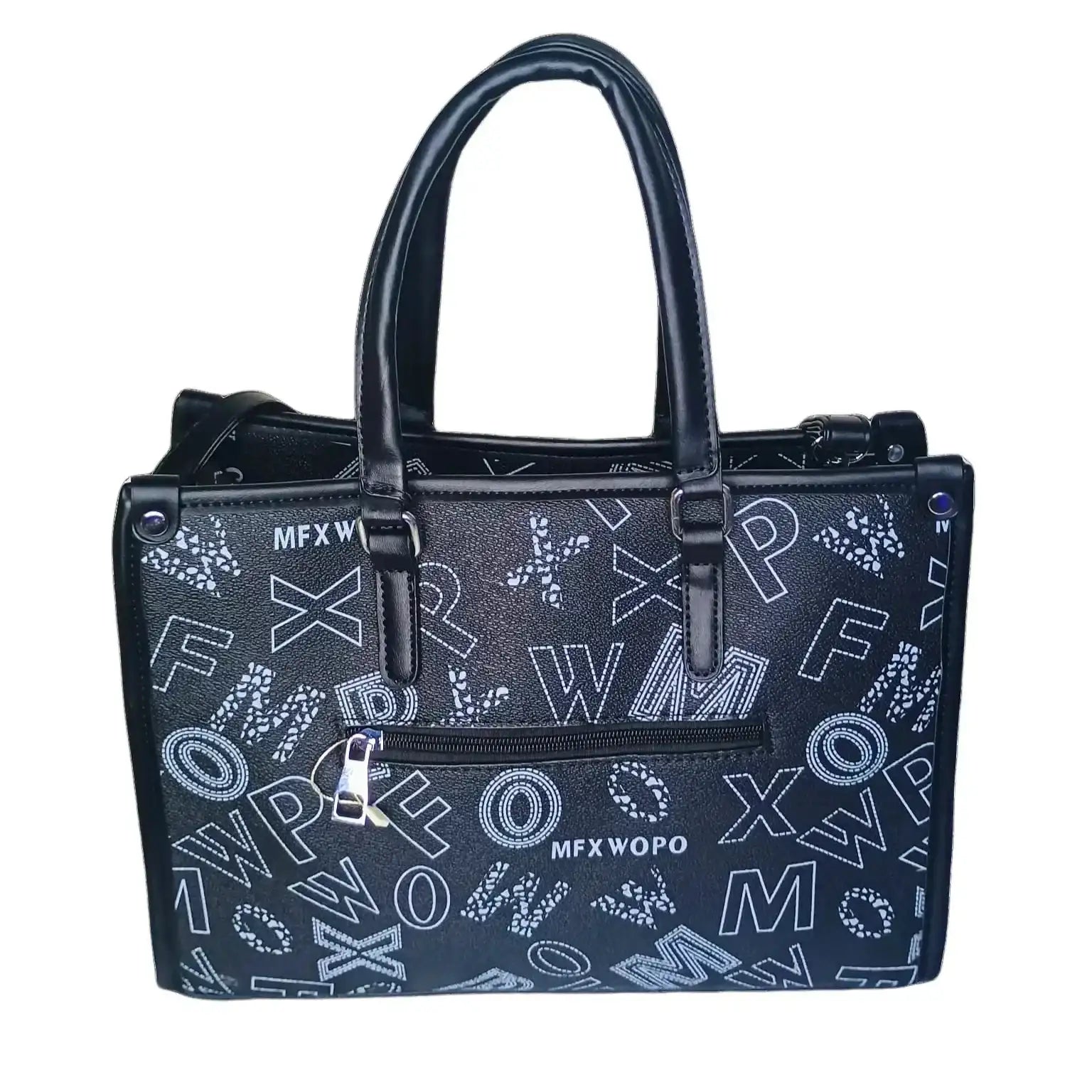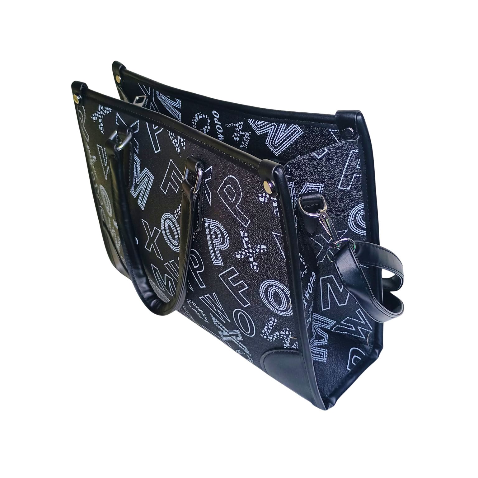 Schwaarz Designer-Tote-Täsch mat Buschtawemuster fir Fraen