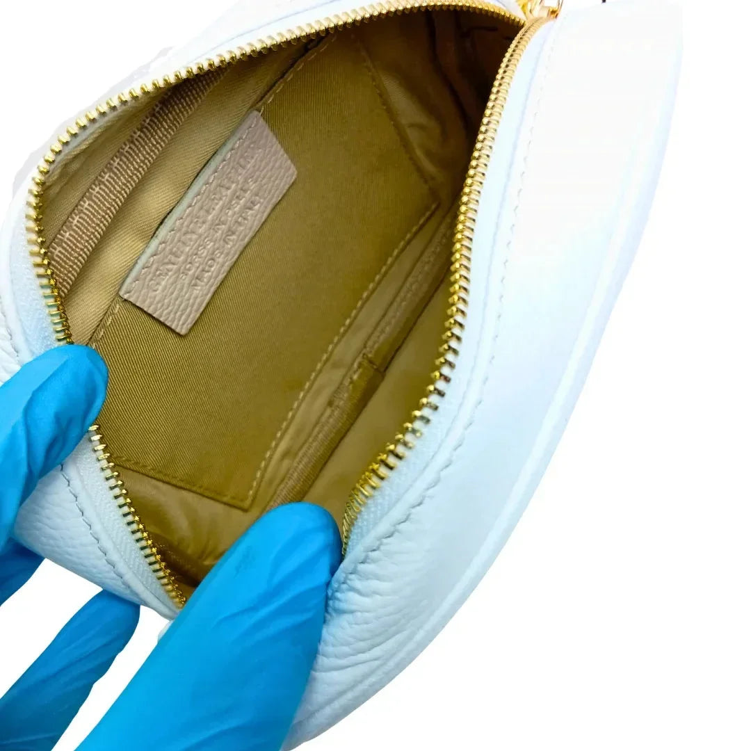 This white crossbody bag is made from premium full-grain leather and features an adjustable strap for comfortable, hands-free use. The structured design helps the bag maintain its shape, and the leather surface may develop a natural patina with regular wear. The interior includes multiple compartments to keep personal items organized and easy to access. Suitable for everyday use, this leather crossbody bag can be worn for casual outings or professional settings.