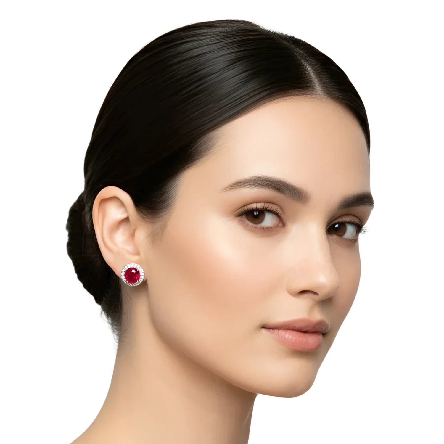 Elegant med en strålende glans, vores Gemstone & White Halo Stud Earrings har en brillant ædelstenskerne omgivet af en lysende hvid halo af glitrende sten. Designet til smukt at reflektere lys, tilføjer disse øreringe et raffineret strejf af farve og sofistikering til ethvert look.