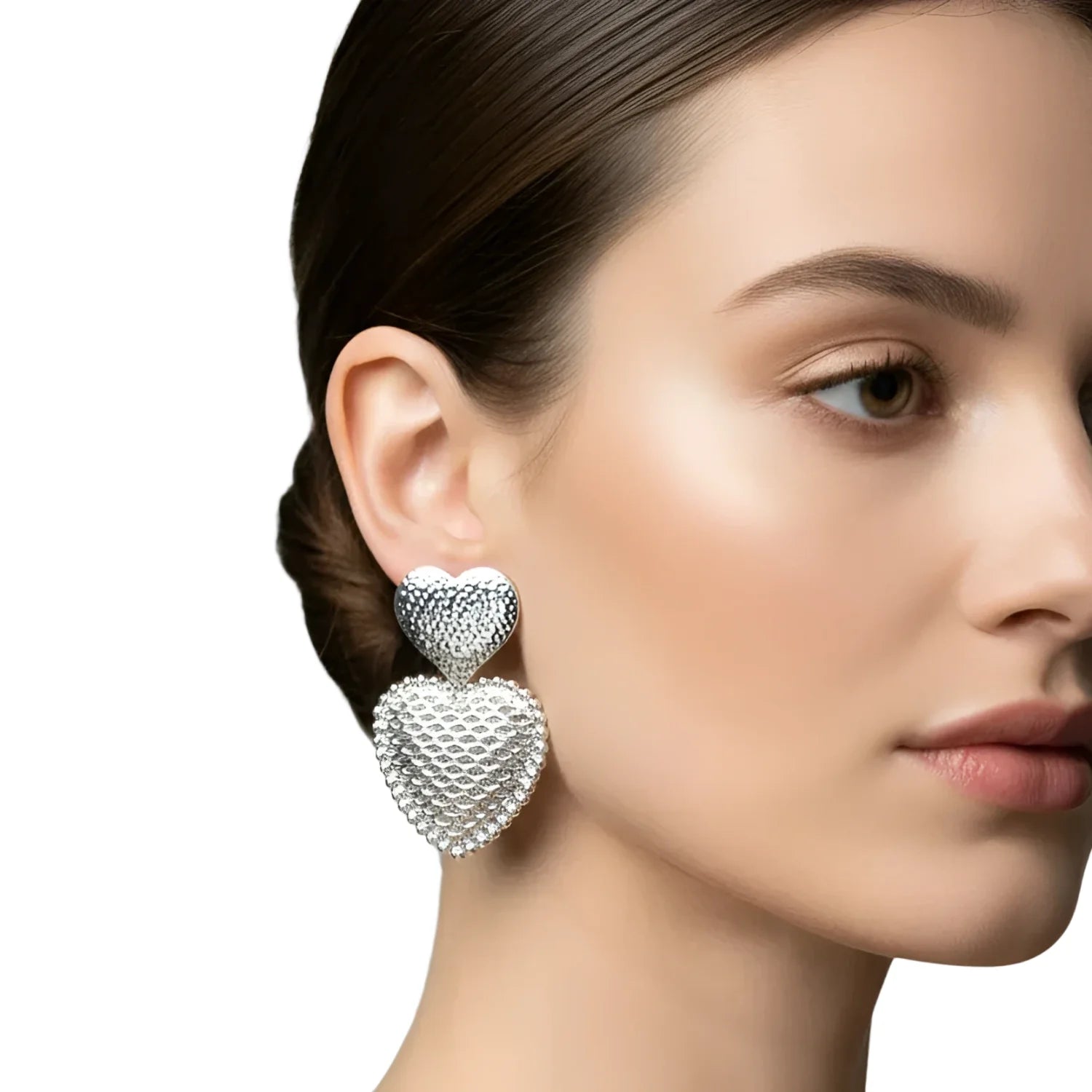 Añade un toque de romanticismo a tu estilo con estos pendientes colgantes de doble corazón en tono plateado. Presentan dos delicadas formas de corazón realzadas con un brillante acabado en tono plateado; el elegante diseño colgante crea un hermoso movimiento y brillo. Perfectos tanto para el uso diario como para ocasiones especiales, estos pendientes aportan un encanto sin esfuerzo a cualquier conjunto.