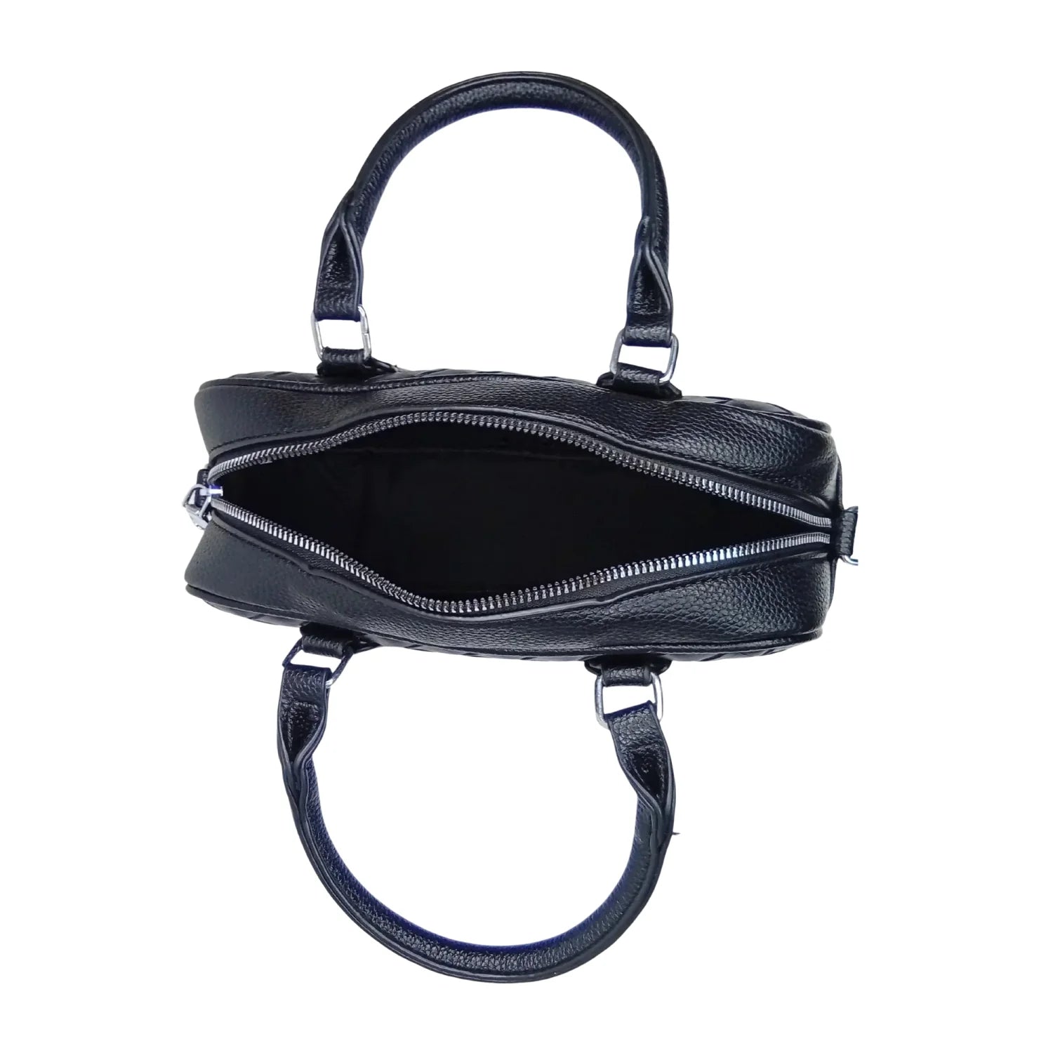 Woven Leather Barrel Bag MS-4299 - Black - Handbag black leather handbag