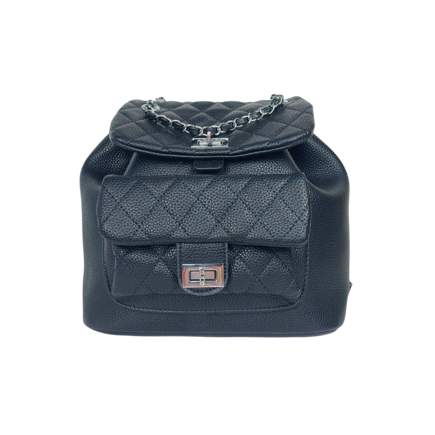 Bold yet timeless, this quilted backpack blends contemporary design with everyday practicality. Featuring a sleek silhouette, refined stitching, and a statement chain detail, it’s the perfect balance of fashion and function. Designed to elevate casual and city looks with confident, modern style.