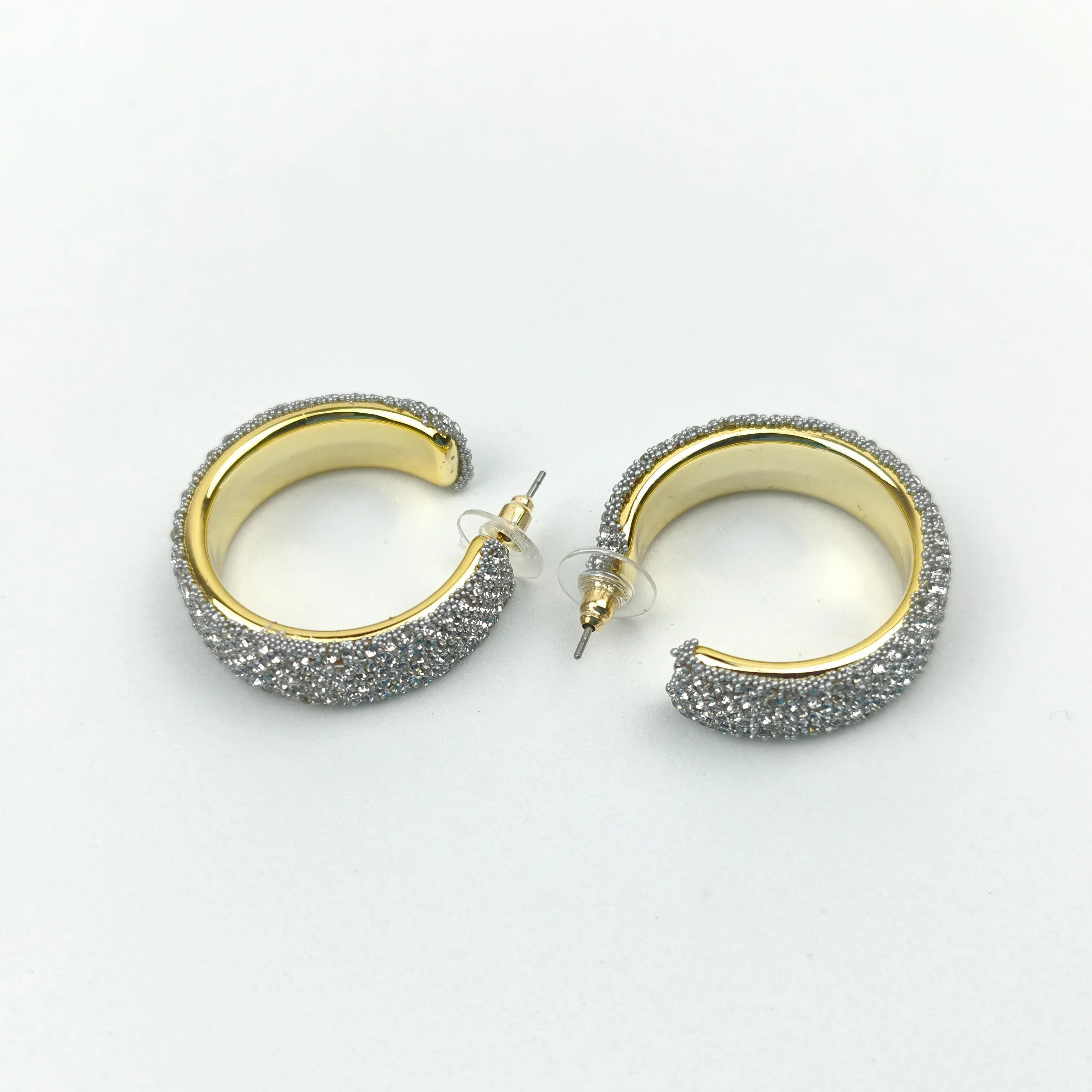 Adj egy kis csillogást a mindennapi megjelenésedhez ezekkel a arany tónusú strasszos karika fülbevalókkal. Az összes szögből megcsillanó fényt célzó kialakításuknak köszönhetően ezek a klasszikus karikák csillogó strasszokkal vannak díszítve, hogy könnyedén elegáns hatást érjenek el. A meleg arany tónusú foglalat időtlen érintést ad, így könnyen fel- vagy leöltöztethetők.