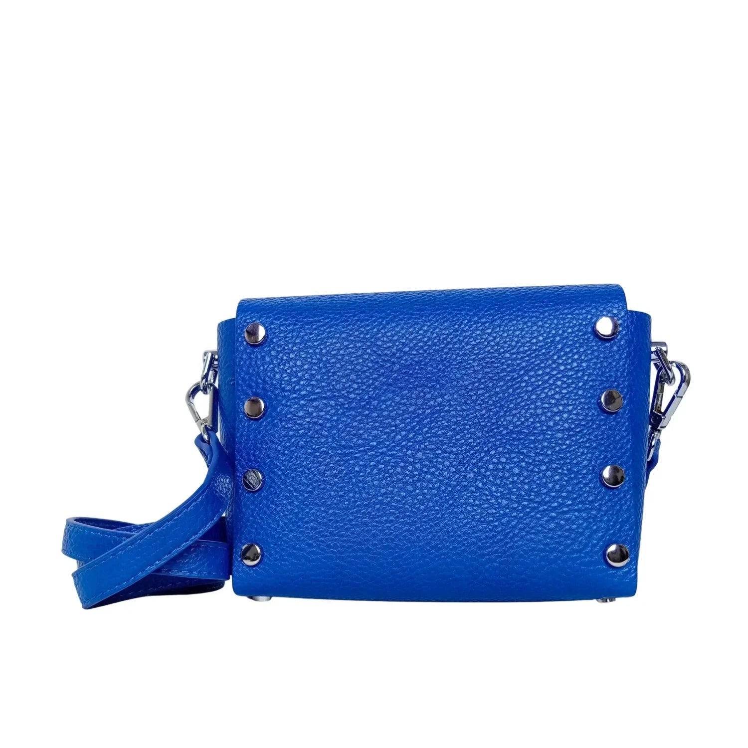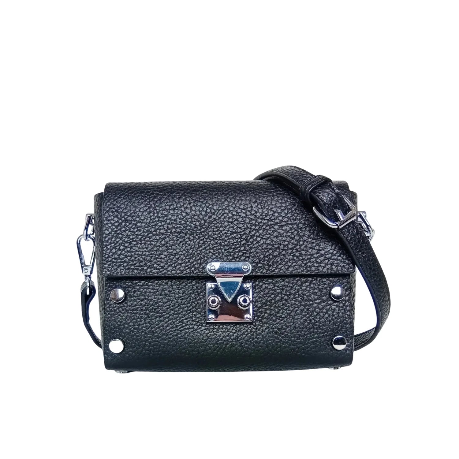 Pochette a tracolla in pelle con ferrature color argento MS-1907