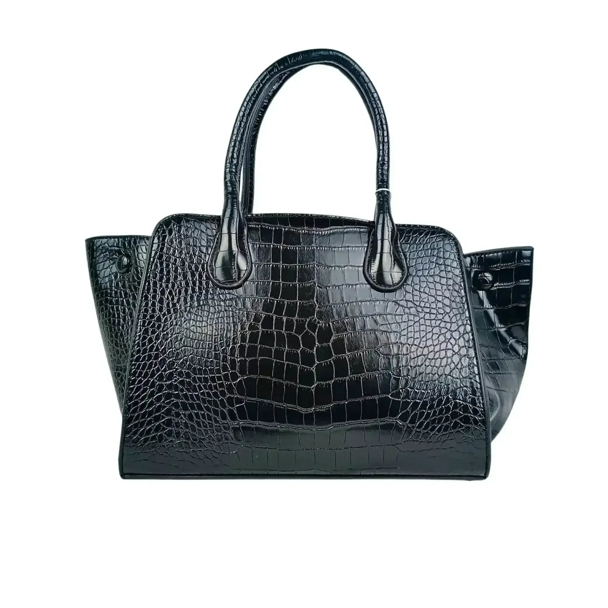 Borsa a Mano in Pelle di Coccodrillo Nera - MS-3643