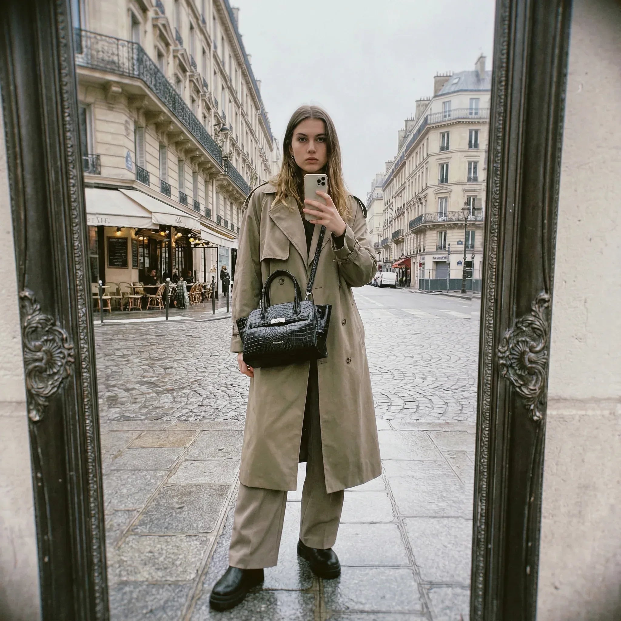 - Materiale esterno: Pelle di coccodrillo verniciata
