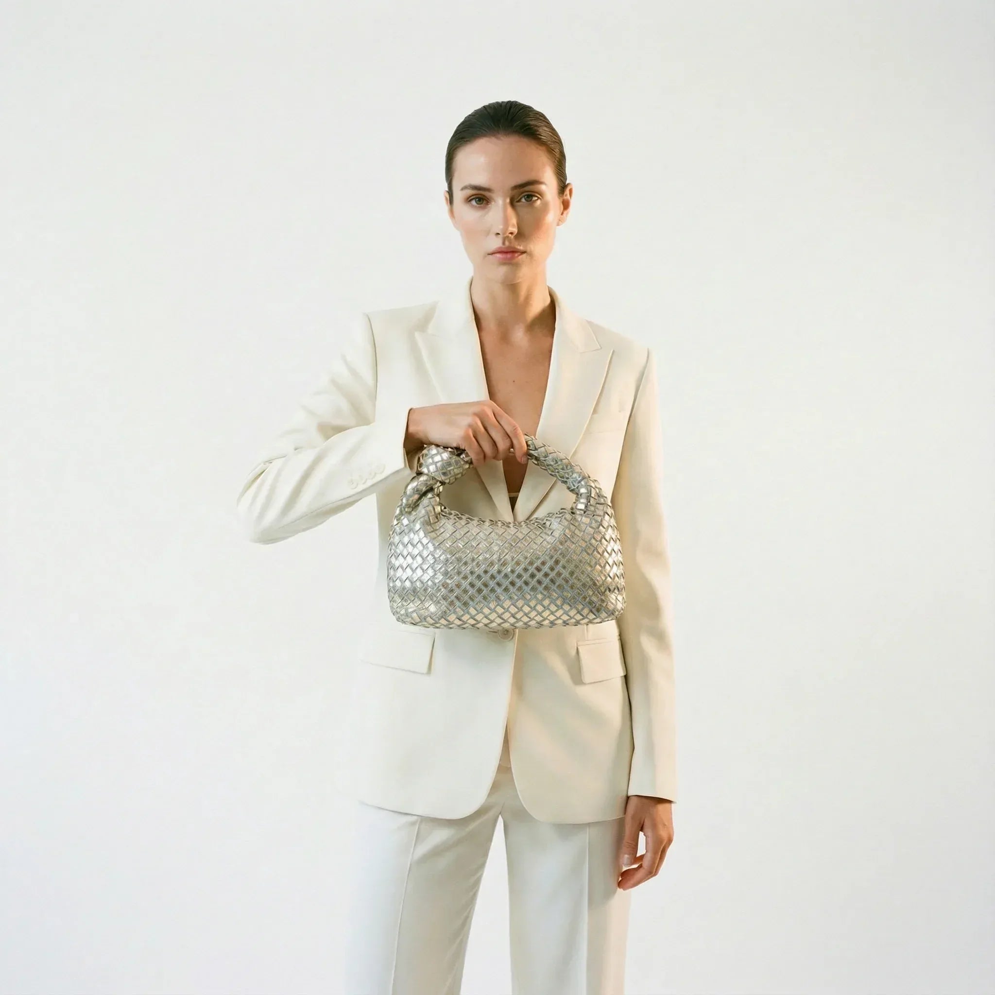 Eleva la tua eleganza quotidiana con questa sofisticata borsa a manico nodo in mesh, meticolosamente realizzata in pelle pregiata e dettagli innovativi in mesh. I manici annodati distintivi offrono una presa raffinata, mentre la tracolla regolabile e staccabile consente uno stile versatile—indossala come borsa strutturata o trasformala in una tracolla per una transizione senza sforzo tra le occasioni. Progettata con cura per l'organizzazione interna e proporzioni senza tempo, questo pezzo unisce perfettamente lusso e praticità, rendendolo un'aggiunta essenziale a qualsiasi guardaroba esigente.
