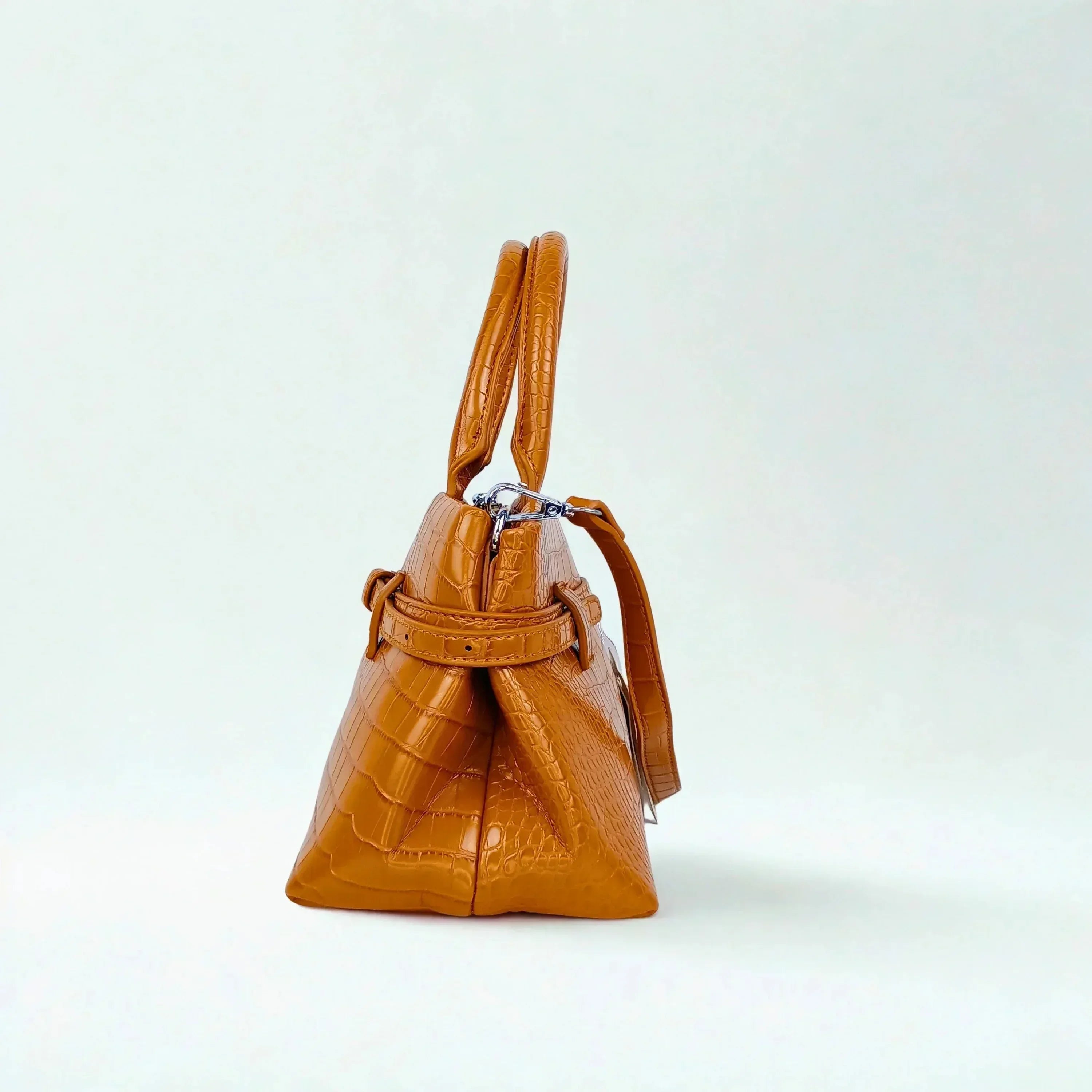 The MS-7433 showcases patent crocodile leather with a lustrous finish that accentuates the material's natural texture. This structured handbag combines refined elegance with practical functionality, resisting daily wear while developing a distinctive patina over time. An investment piece for those who appreciate superior craftsmanship and timeless design.